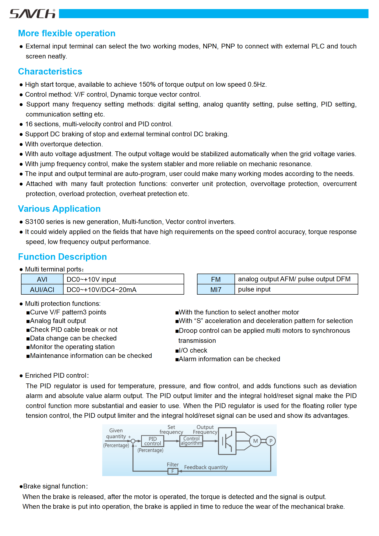 S3100 Multi Function Open-Loop Vector Control inverter utilizs Japanese technology and international brand chipswith and has very good performance and quality, which is widely used in solar pump, plastics machine and elevator etc.