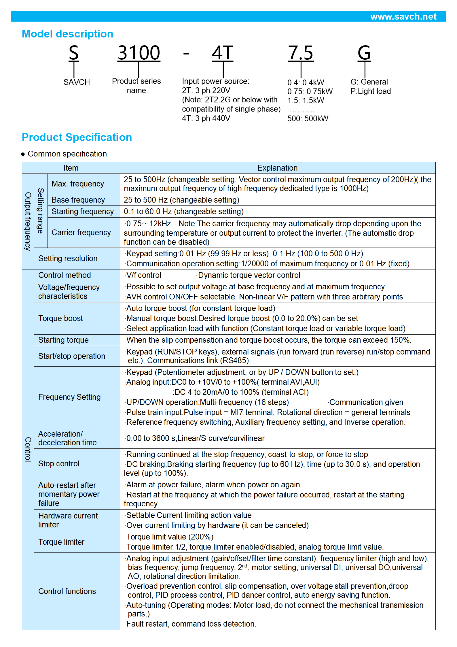 Rated Voltage:Single/three-phase 220V,three-phase 440V Frequency range:0.1~500Hz